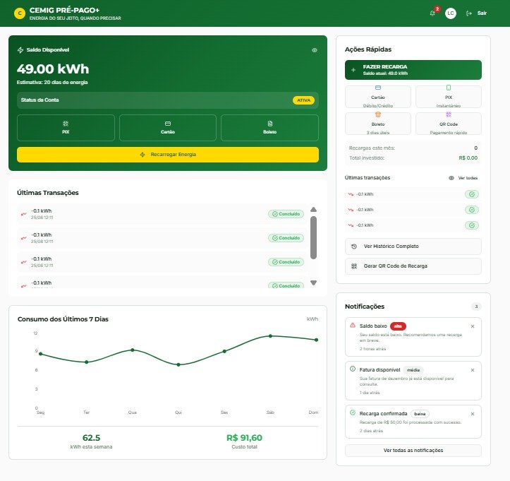 Painel Interno Cemig: visão em tempo real de recargas, saldos, alertas e relatórios analíticos.